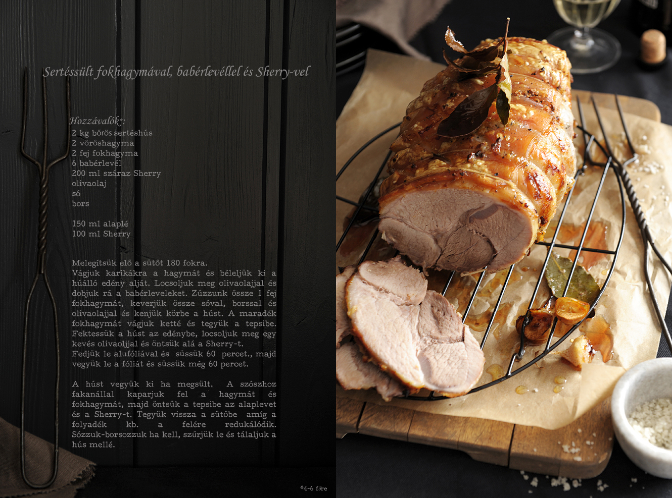 Már vagy két hete készült ez az ínycsiklandozó finomság de még mindig érzem az ízét a számban. Az egész úgy kezdődött, hogy megláttam egy csodaszép bőrös sertéshúst a boltban. A történet folytatása onnan már egyszerű volt, csak hozzádobáltam ezt-azt, amit éppen jónak láttam és felöntöttem egy kevés Sherry-vel. Ennek a gőzében sült a hús puhára és a teteje ropogósra. Ha azt mondom Sherry akkor nem az édes likőrre kell gondolni, hanem a száraz Sherry-re, a spanyol borra. A neve spanyol Jerez városnak, a bor termőhelyének nevéből ered.